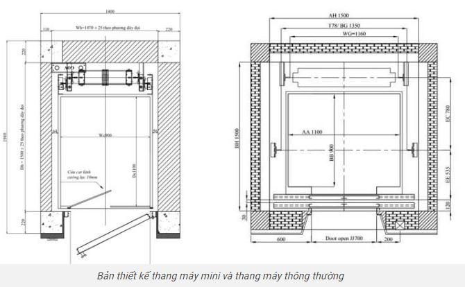 Với thang máy cửa mở tay thông thường thì hố pit chỉ từ 300mm, nhưng với thang máy cửa mở tự động thì hố pít tối thiểu phải là 600mm trở lên.